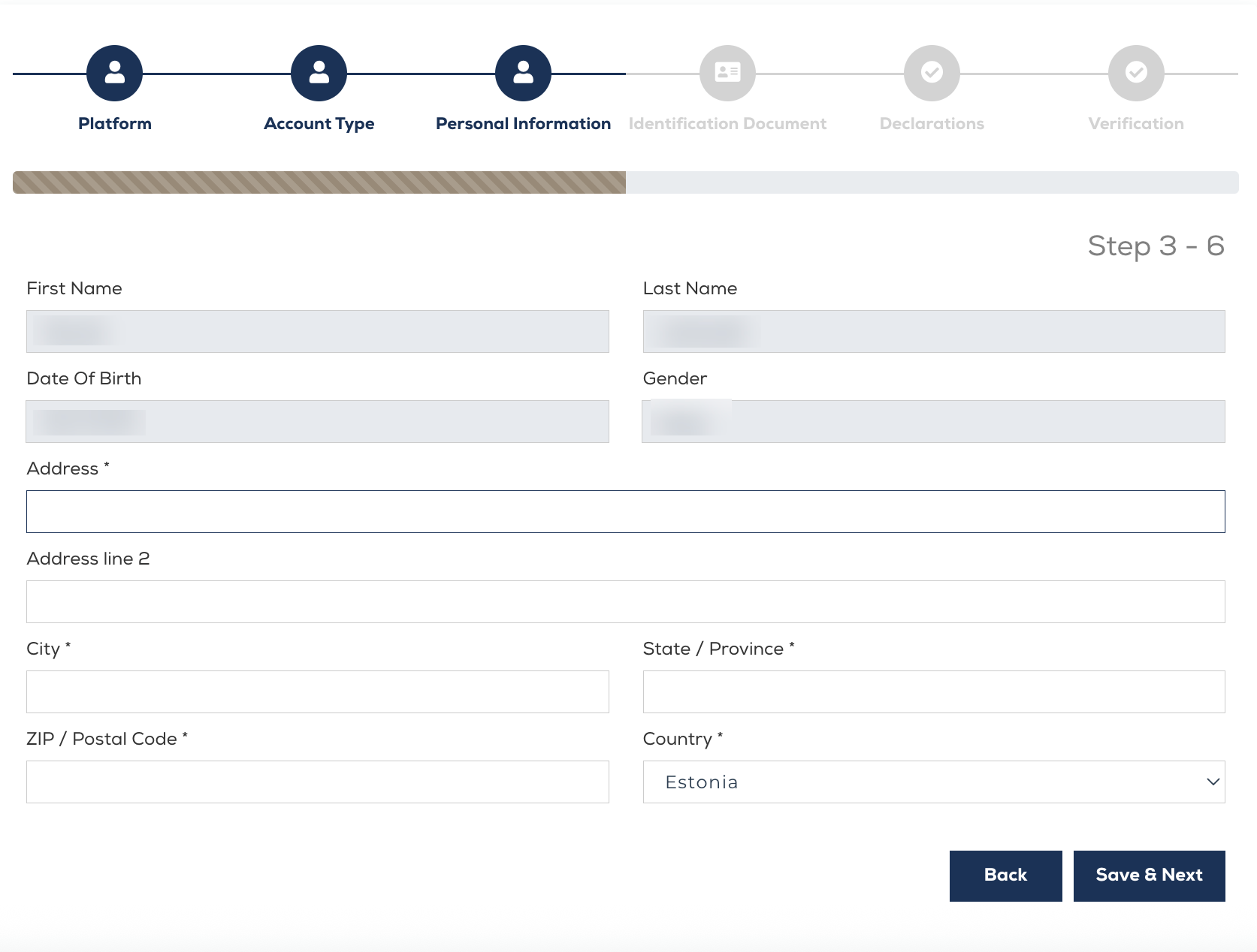Please provide your personal information, including your first name, last name, date of birth, and residential address.