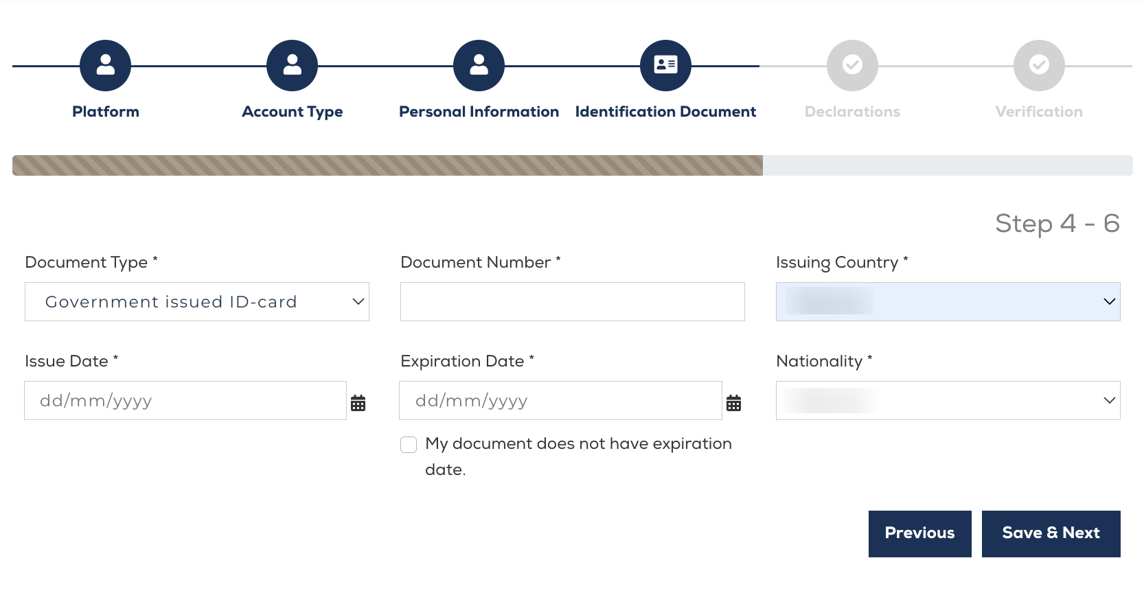 Please enter the details of your identification document—such as a passport, driver’s license, or national ID card.