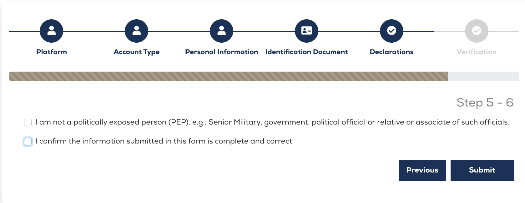 At this step, you are required to confirm that all the information you have provided is accurate and truthful.
